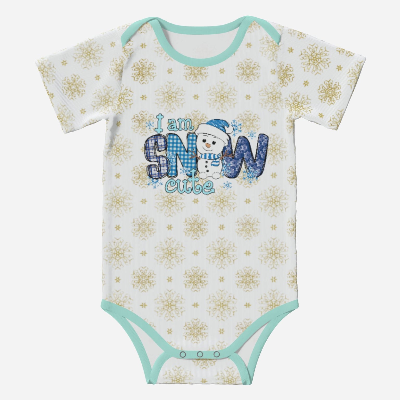 SNOW CUTE' Cute Snowman; Short Sleeve Romper/Sleepsuit, Eco-Friendly Cotton
