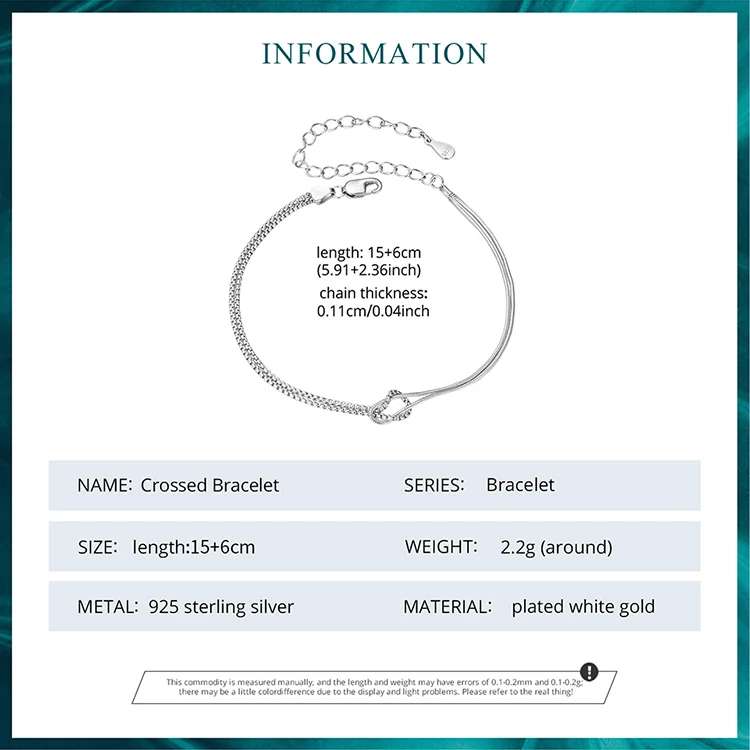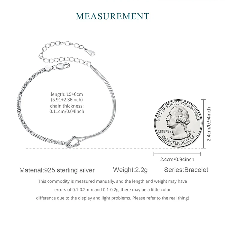 Simple, distinctive, elegant, 925 sterling silver bracelet features a box chain and a snake chain, caught together in a Lover's Knot.