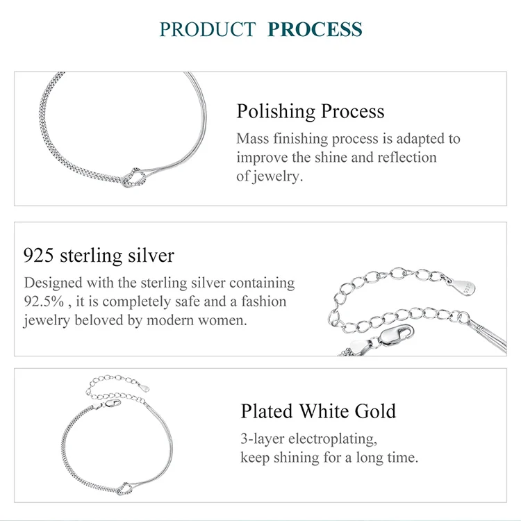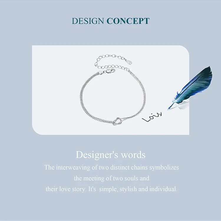 BAMOER 2 Sterling Silver Chains, Caught Together in a Lover's Knot