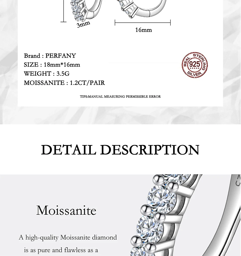 Moissanite Weight: 0.36CT/1.2CT/per Pair