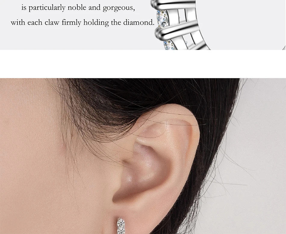 925 sterling silver earrings with row of dainty, sparkling moissanite diamonds (certified).