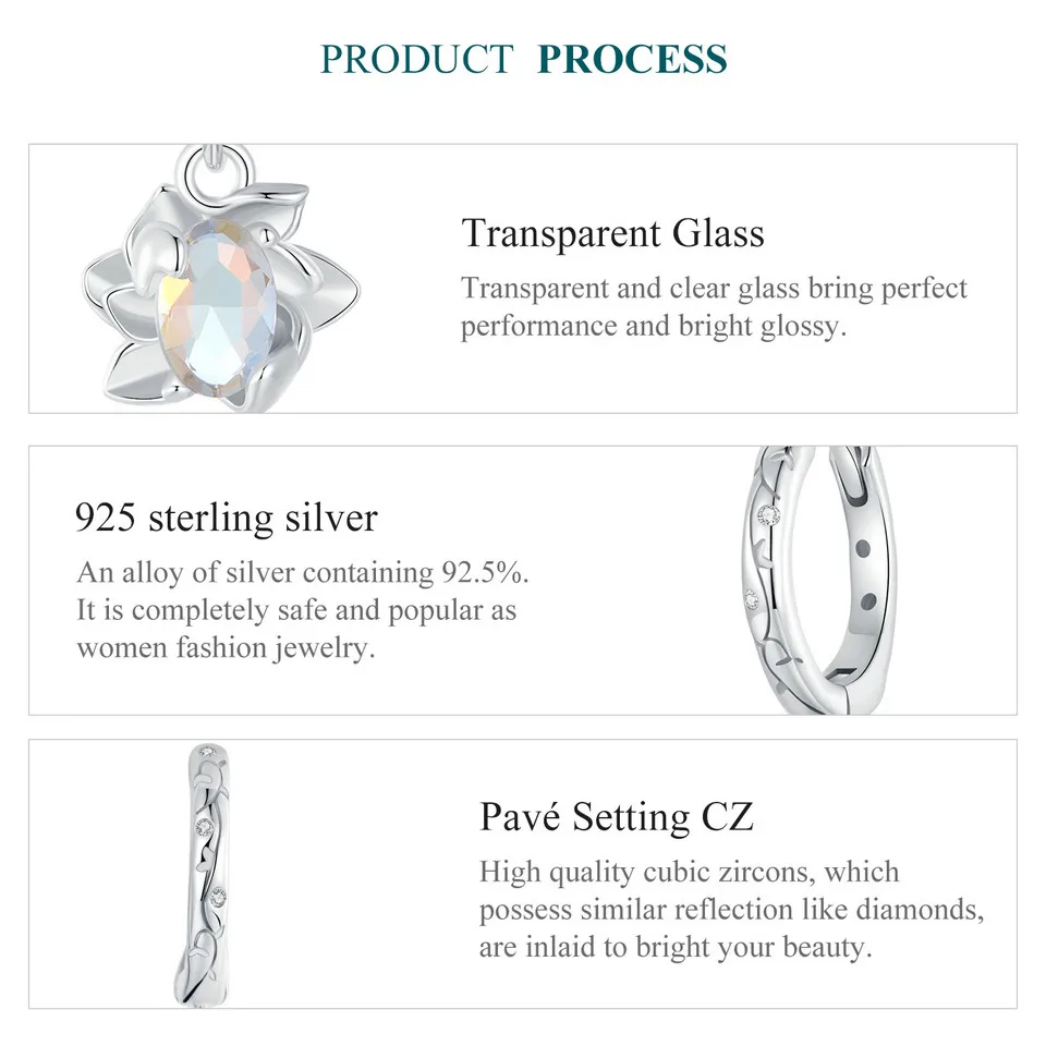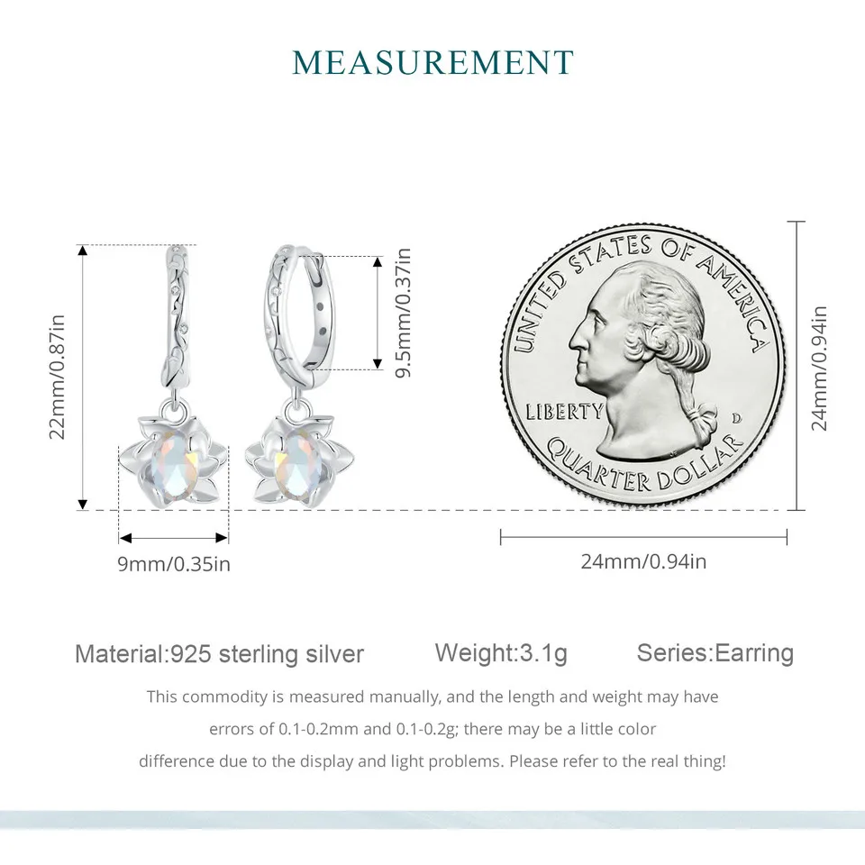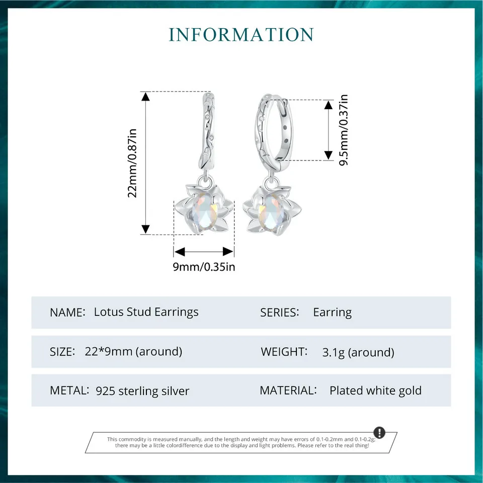 WOTSU Rainbow Crystal Lotus Drop Earrings in S925 Sterling Silver, Plated with White Gold